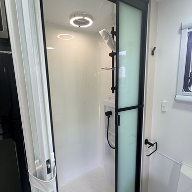 and comes with a full size shower with light and fan